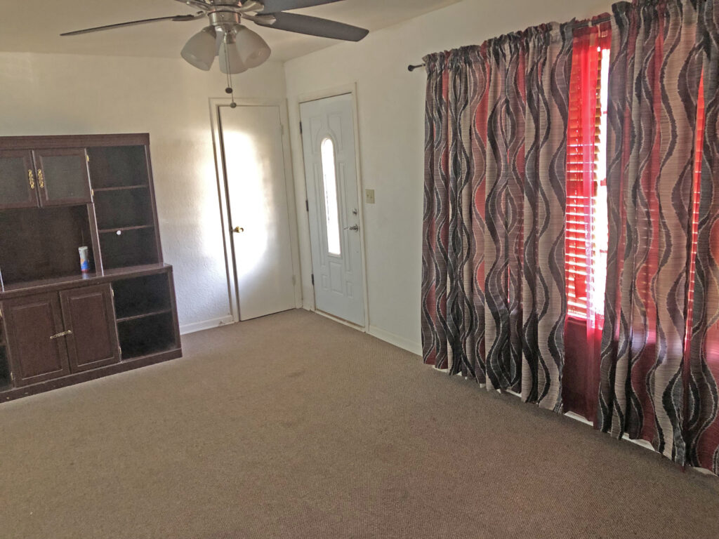 This rental home in Idabel has some nice bonuses! The kitchen is open to the dining area which has some large mirrors, giving it an even larger open feeling. Has stove and dishwasher. We have a fridge that can be installed in the home if needed. Laundry room has a washer and dryer… they do work but no guarantees on the pair. If they stop working, we do not replace… I’ve used this pair- good set. I do love the extra storage in the bonus room that is a converted single garage! Look at that wall of shelves! There’s a storage building on the property as well! 3 bed 1 1/2 bath. Rents for $1250 per month.